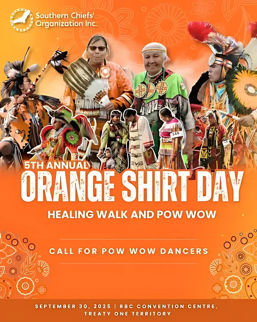 The Southern Chiefs’ Organization (SCO) invites you to attend the 5th Annual Orange Shirt Day Healing Walk and Pow Wow on September 30, 2025, the National Day for Truth and Reconciliation, in Winnipeg, Treaty One Territory.